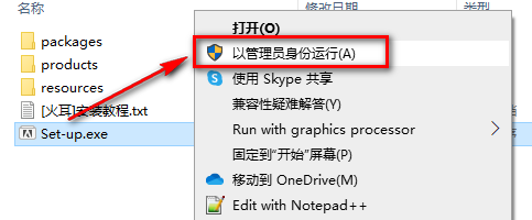 2.找到并选中Set-up,鼠标右键点击“以管理员身份运行”